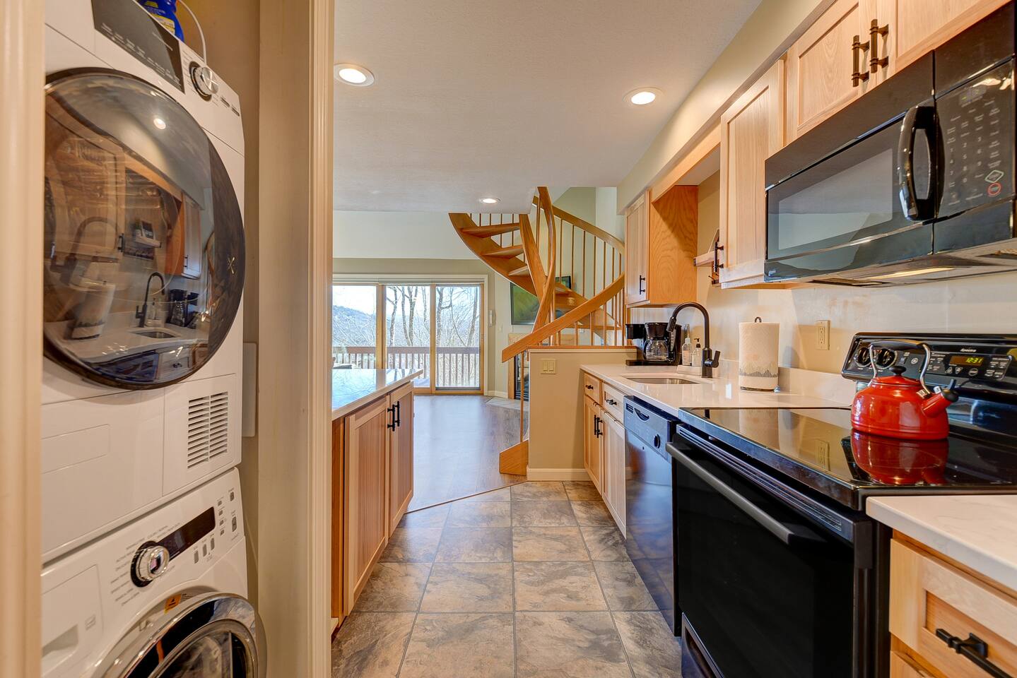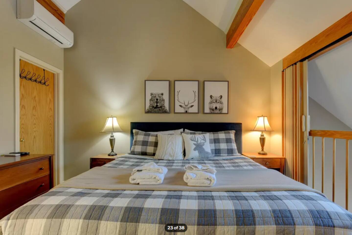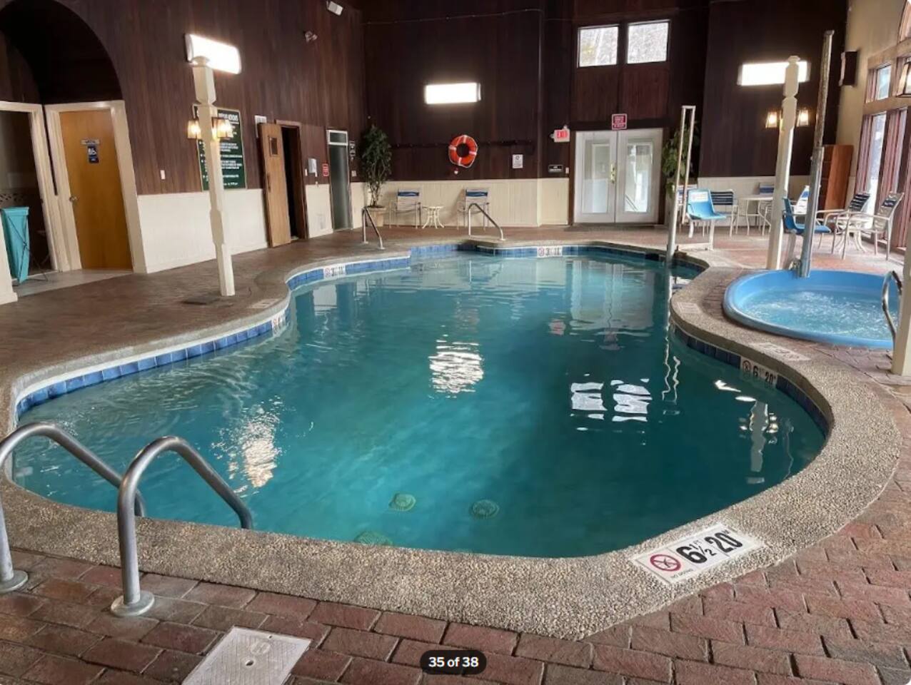 Looking for a comfortable vacation condo? Look no further! Our Nordic Village condo is the perfect getaway for you and your family or friends. With two bedrooms and two bathrooms, this 2-story unit features a spiral staircase, fireplace, and a deck that offers stunning views of the White Mountains. But the amenities don't stop there. Take advantage of the indoor and outdoor pools, hot tubs, and a sauna to relax and rejuvenate after a day of adventure. And when you're ready to hit the slopes, Attitash, Cranmore, Wildcat, and Black Mountain are all just a short drive away followed by a visit to North Conway downtown for shopping and a meal. But skiing isn't the only activity available in the area. White Mountain National Forest, with its breathtaking beauty, offers hiking, biking, and wildlife viewing opportunities. And, for those traveling with children, Story Land is just a mile away, where your little ones can enjoy rides, attractions, and shows. Back at the condo, there's plenty of room for everyone to relax and unwind. The living room boasts an extra-large sectional ensuring that everyone has a comfortable place to rest. The fully equipped kitchen allows you to whip up a delicious meal with ease, or you can take advantage of the many dining options in the area. After a long day of exploring, retreat to the balcony in the morning to sip your coffee and relish in the scenic views. And for ultimate relaxation, indulge in a soak in the Jacuzzi tub. Whether you're seeking adventure or relaxation, our Nordic Village condo has something for everyone. Book your stay today and experience the magic of the White Mountains!