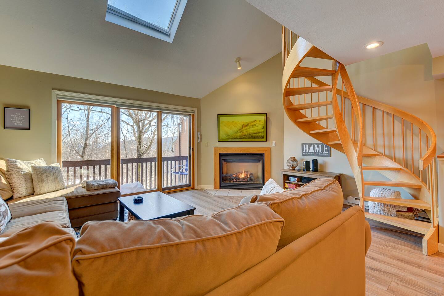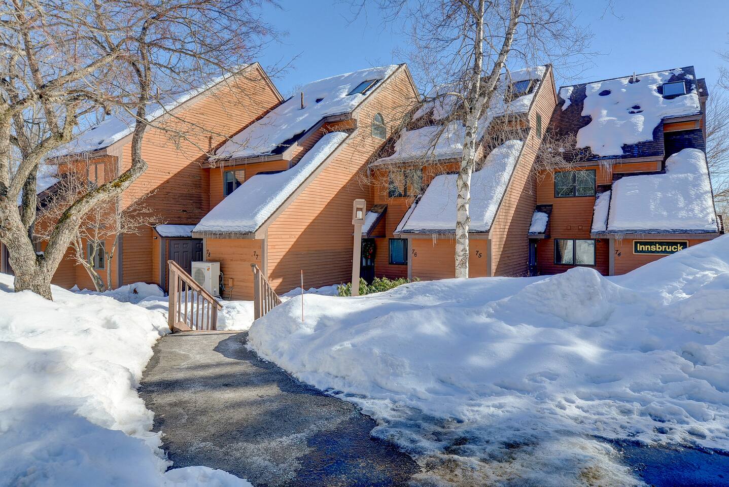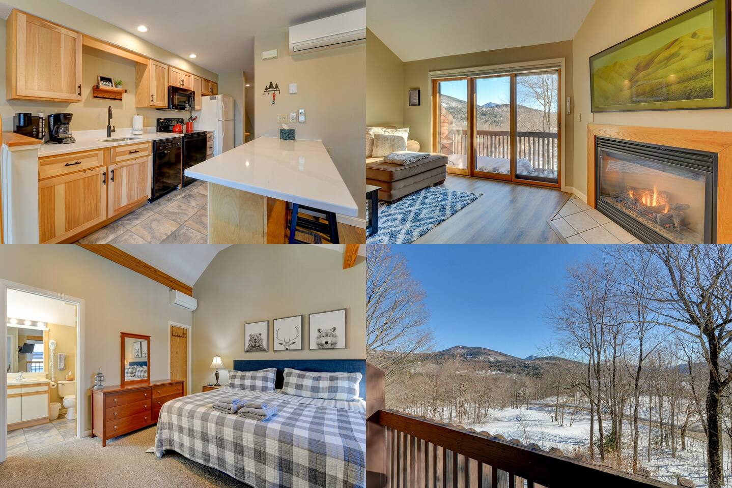 Our Nordic Village condo is the perfect getaway for you and your family or friends. With two bedrooms and two bathrooms, this 2-story unit features a spiral staircase, fireplace, and a deck that offers stunning views of the White Mountains.