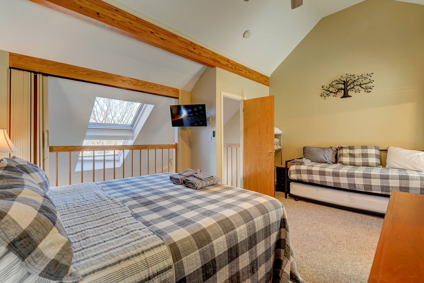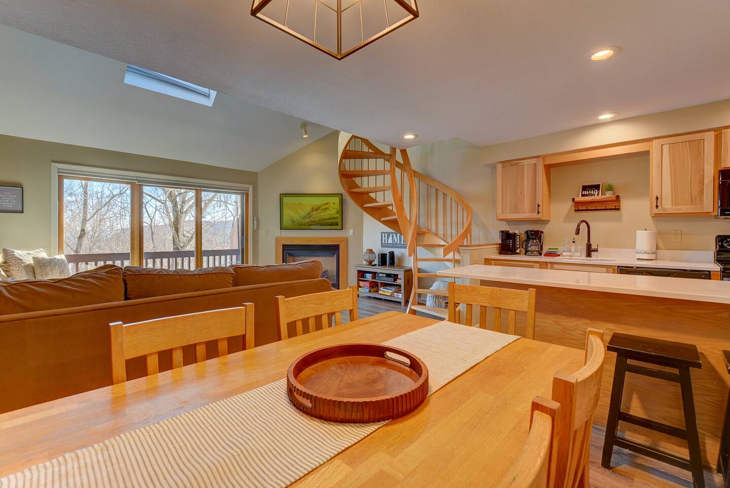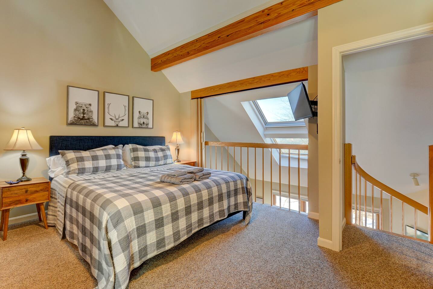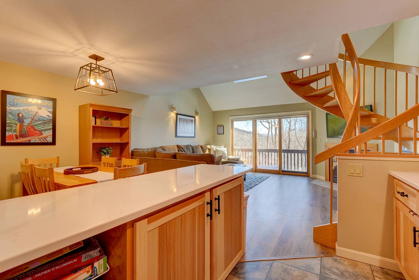 Our Nordic Village condo is the perfect getaway for you and your family or friends. With two bedrooms and two bathrooms, this 2-story unit features a spiral staircase, fireplace, and a deck that offers stunning views of the White Mountains.